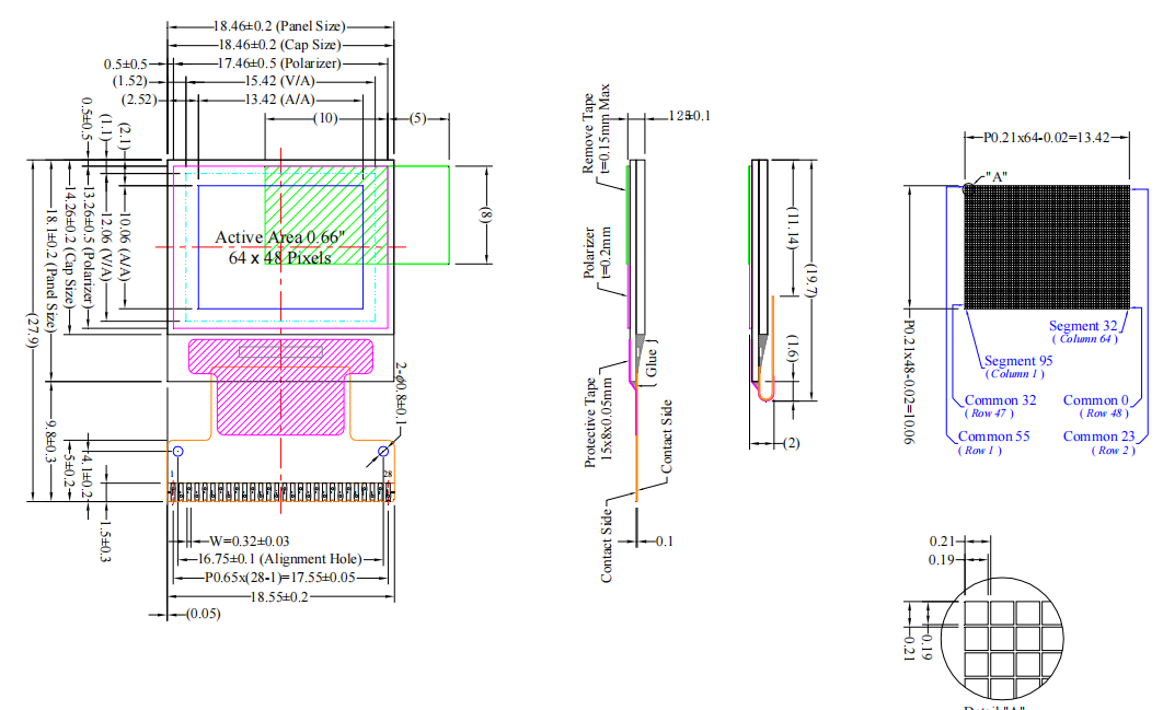 4) Panel Size : 18.46 × 18.10 × 1.25 (mm) including “Anti-Glare polarizer”