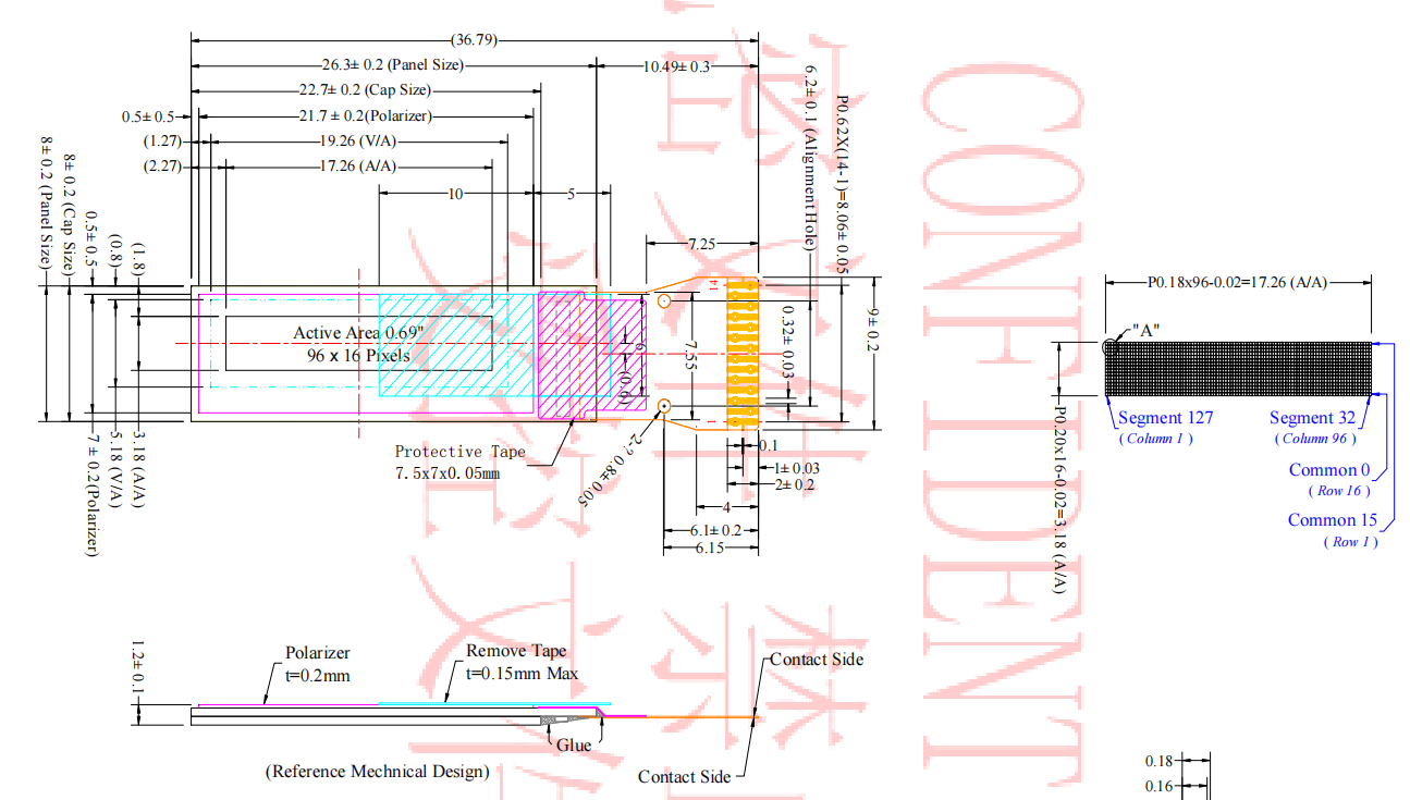 4) Active Area: 17.26 x3.18 (mm)
