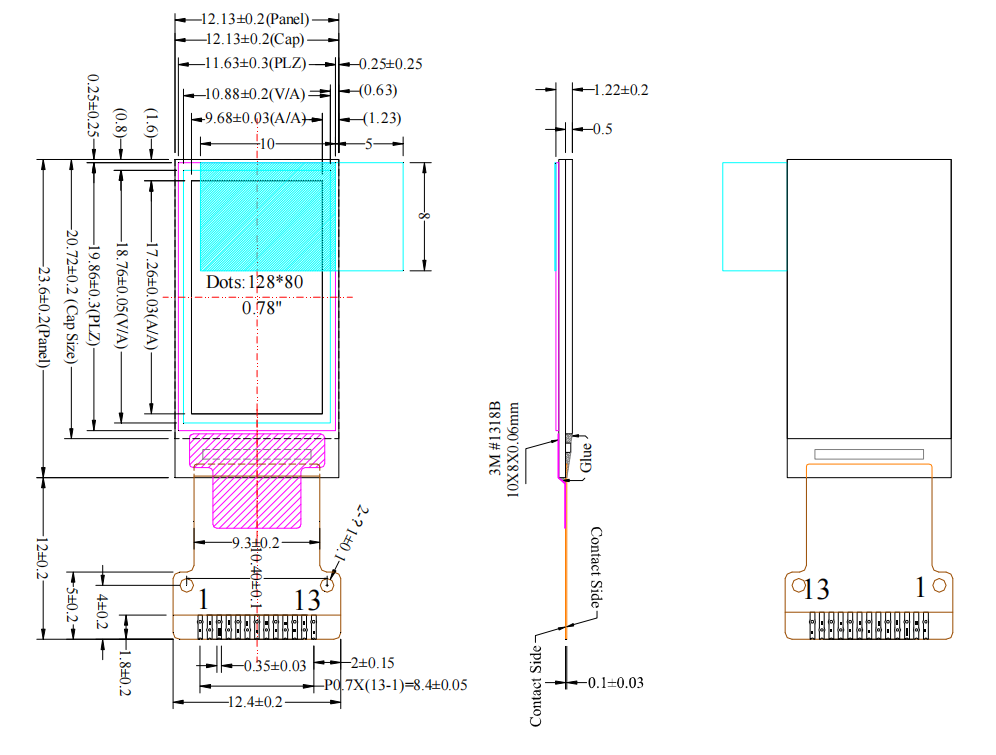0.78inch 0.78'' small oled display panel resolution 128X80 SSD1317 white color I2C interface