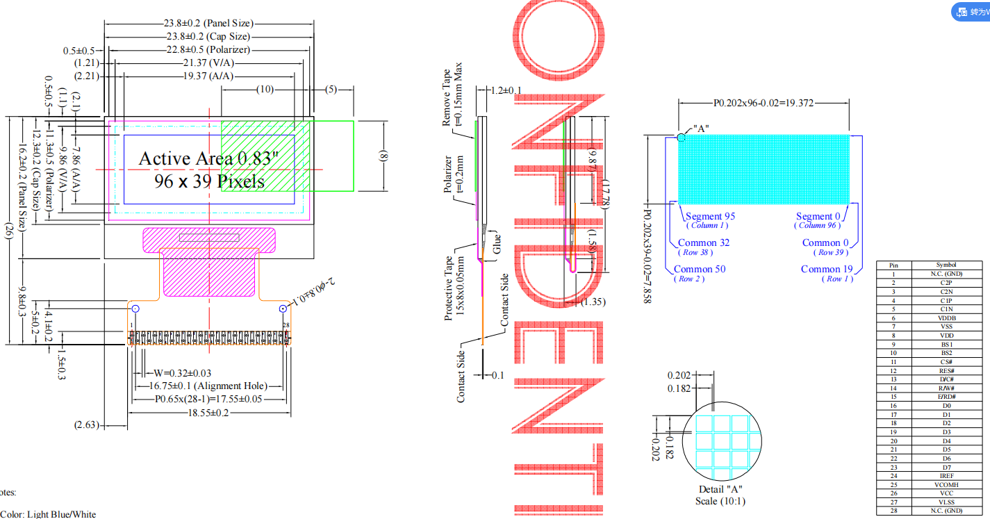 Interface:8-bit 68xx/80xx Parallel,3/4-wire SPI, I²C