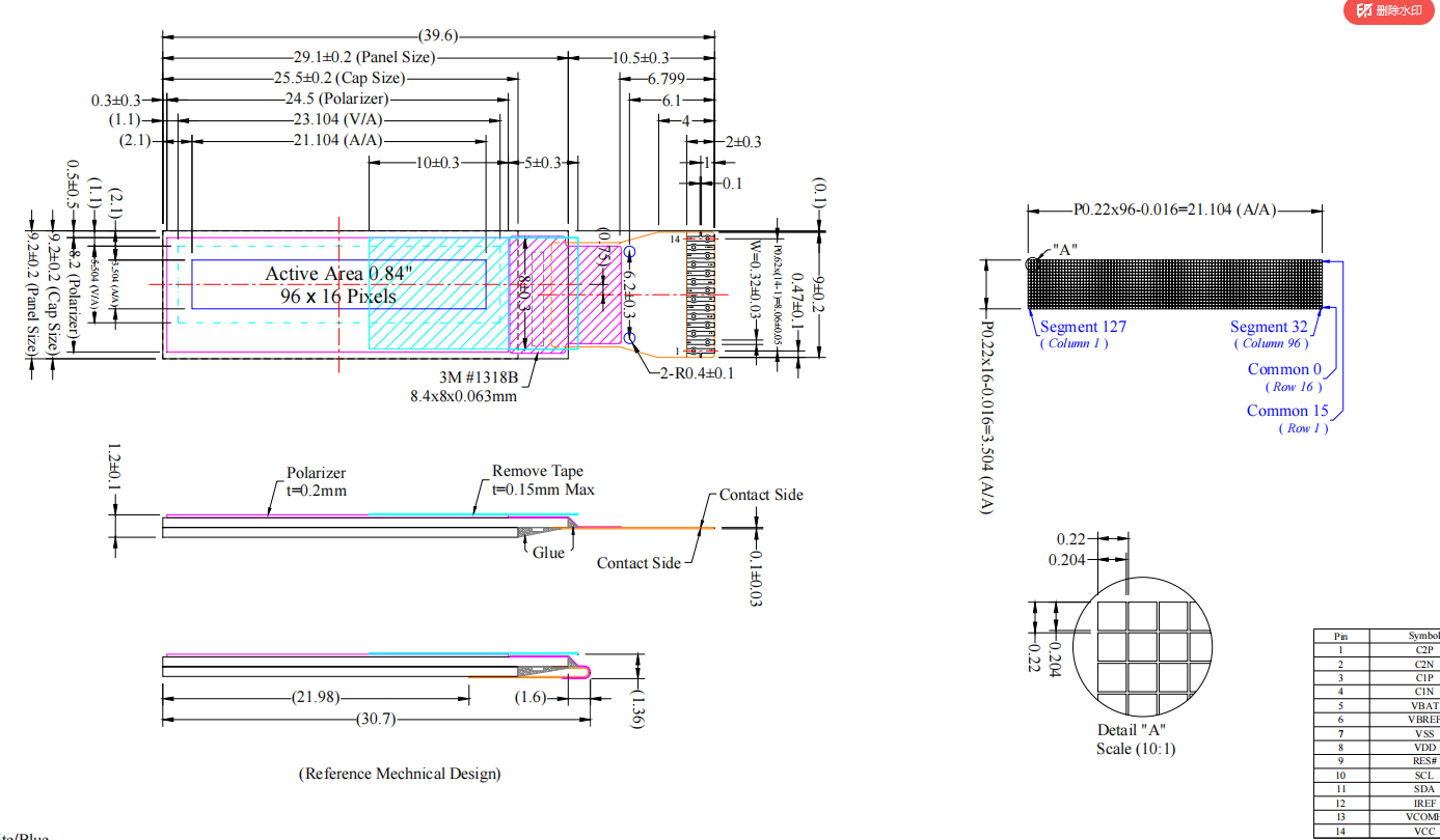 4) Active Area: 21.104 × 3.504 (mm)