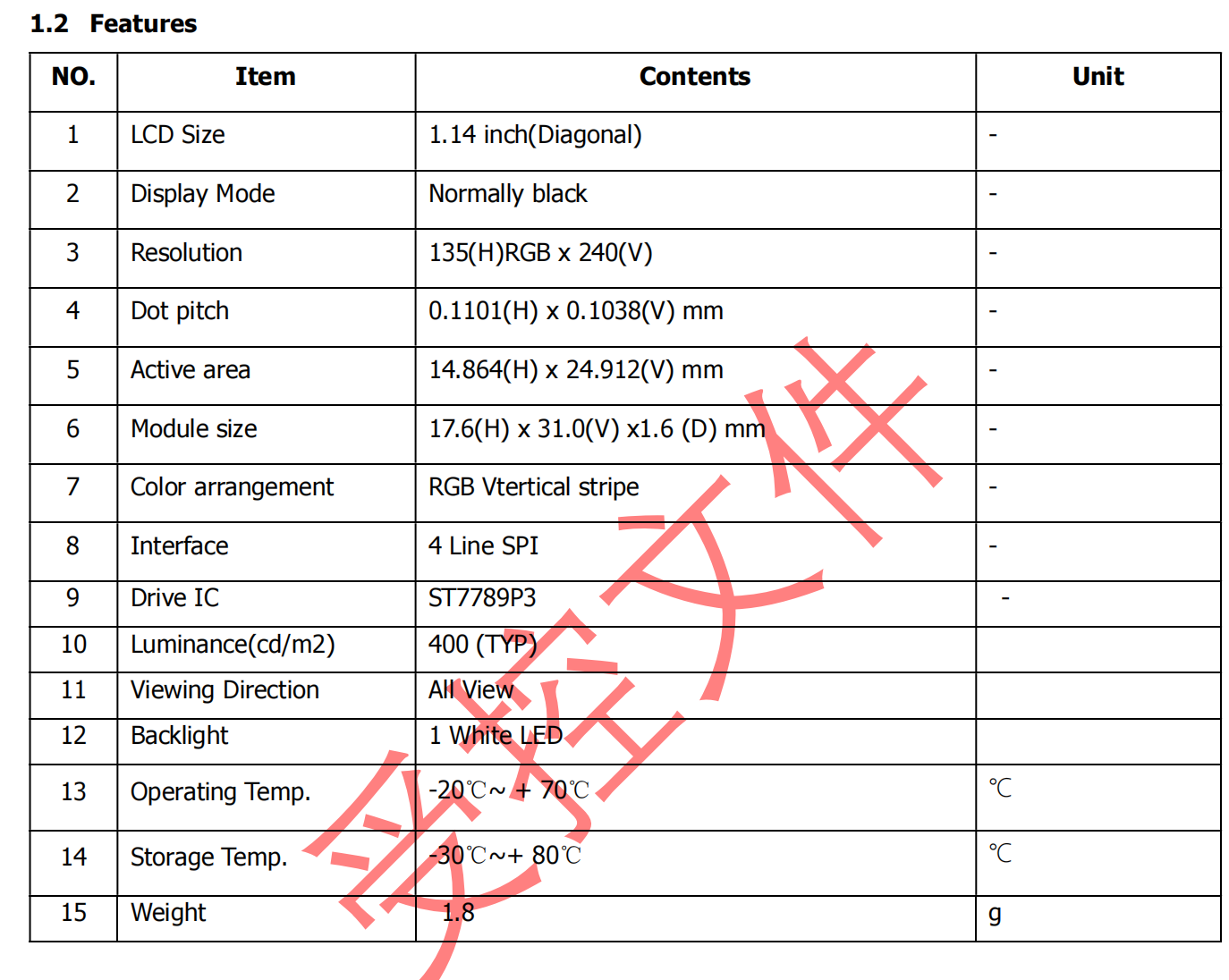 1 LCD Size: 1.14 inch(Diagonal)