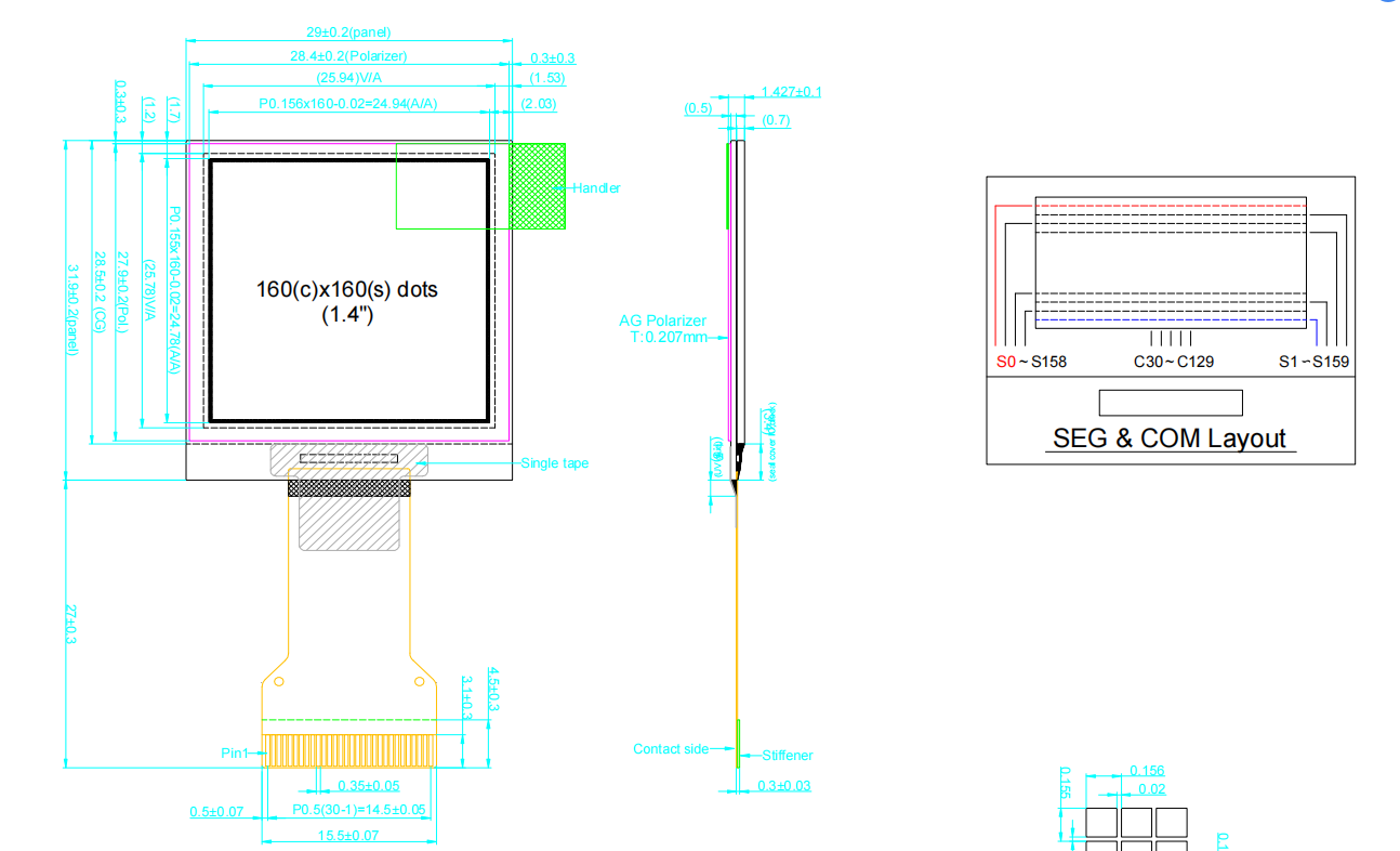 1.4'' 1.4inch oled display panel 160x160 small oled display multi-Interface square shape oled