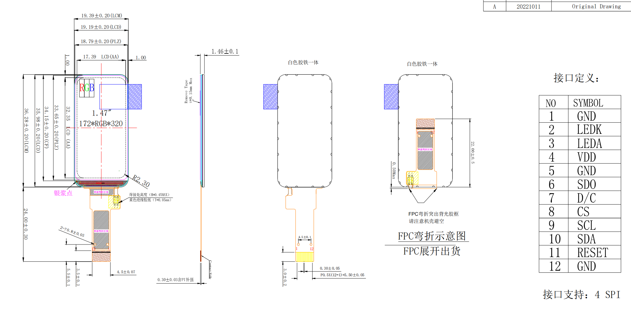 1.47" 1.47 inch resolution 172*320 LCD tft display panel IPS full color SPI interface IC ST7789
