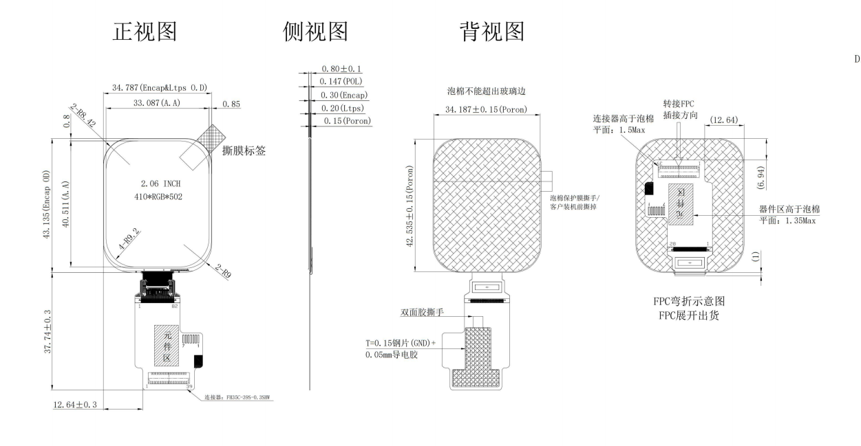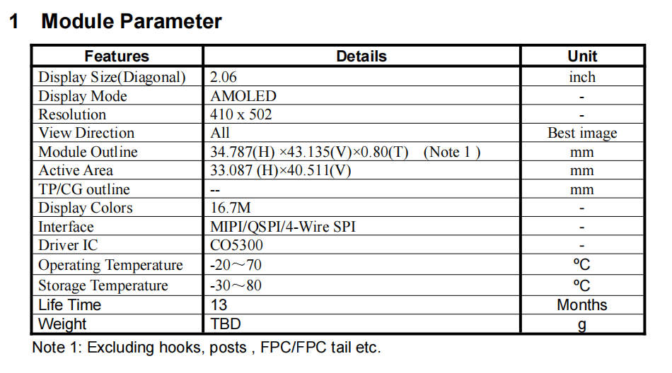 2.06inch square amoled display panel ONCELL Touch Panel 410x502 C05300 MIPI SPI MCU Interface Full Color Am Oled Display
