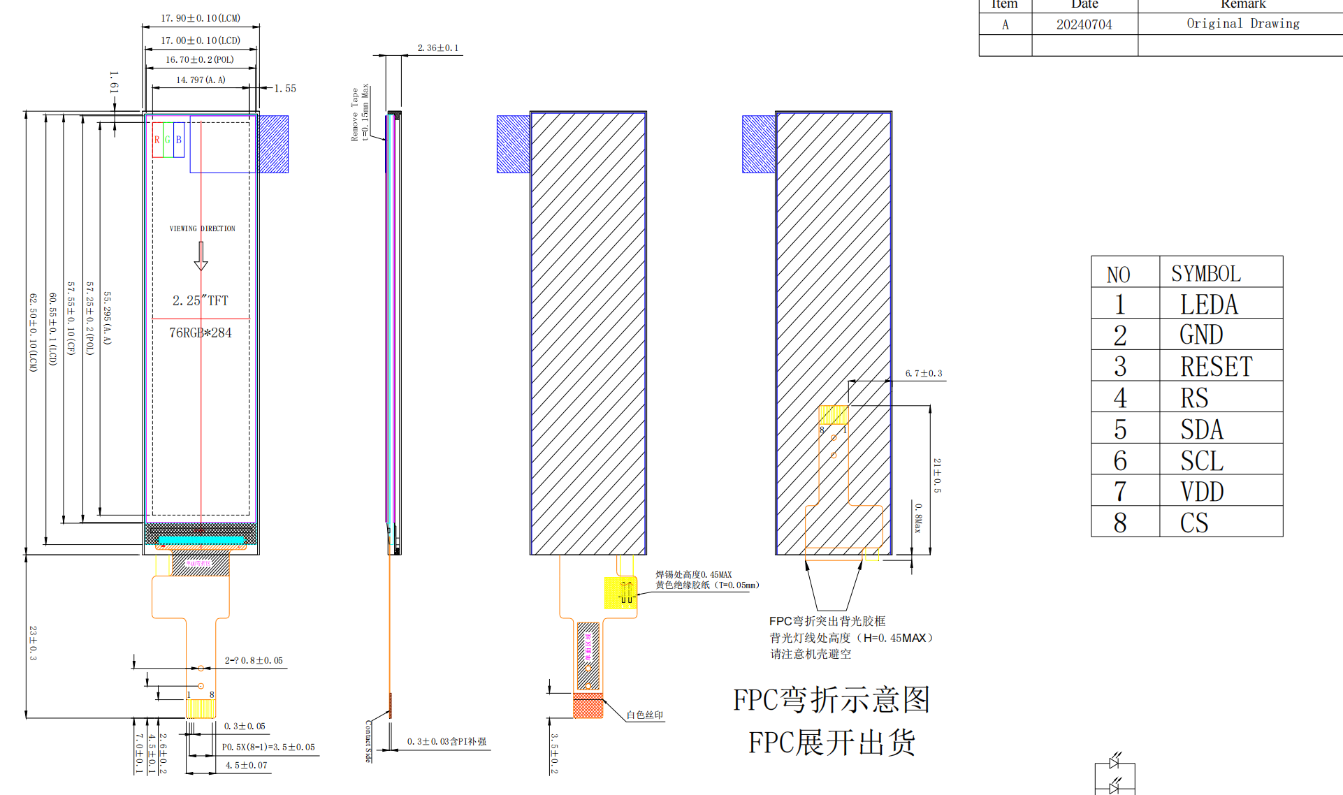 5 Active area 14.7972(H) x 55.2948(V) mm