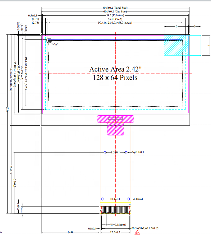 5) Active Area : 55.01 × 27.49 (mm)