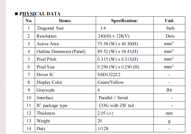 3.37'' 3.37inch 3.4 Inch 240x128 Resolution 16 Grayscale 24 Pin Oled Display QG-4028ASGIG01 Connector Type Ssd1322 Driving