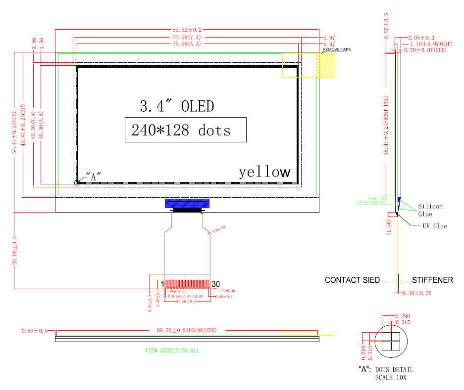 4 Outline Dimension (Panel) 89.52 (W) x 54.41(H) mm²