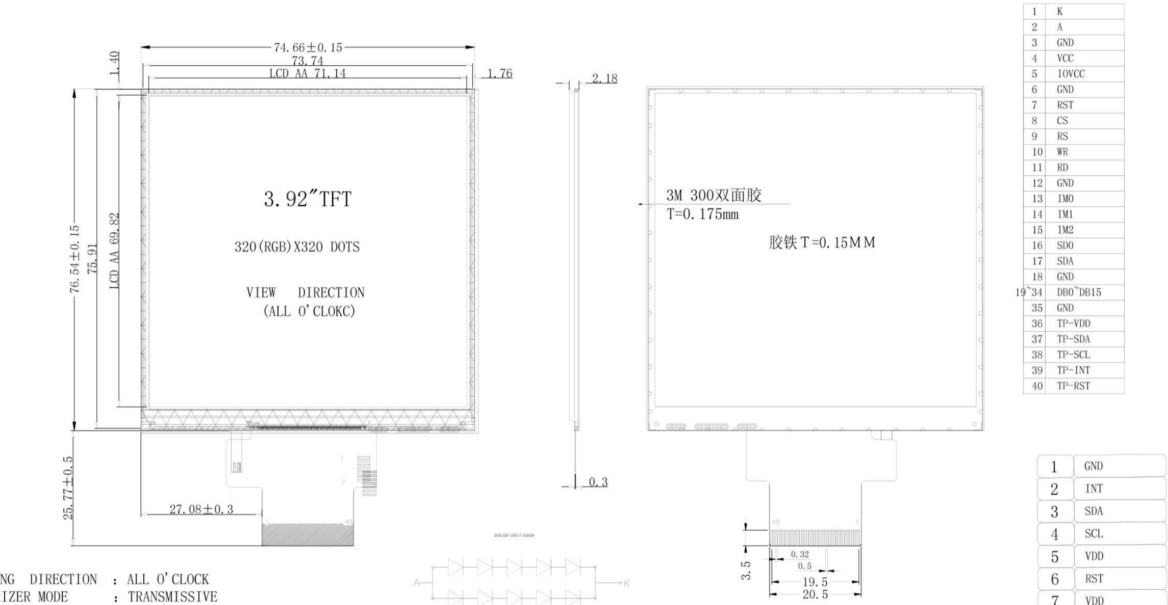 LCM outline size:74.66 (H) x76.54 (V)mm
