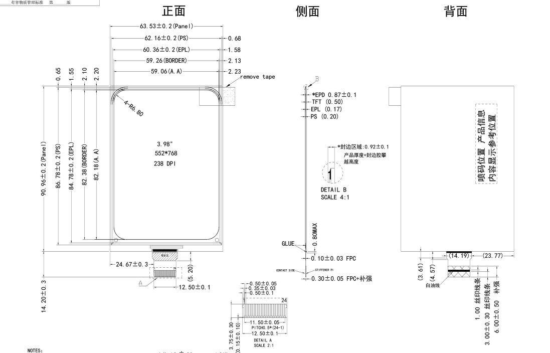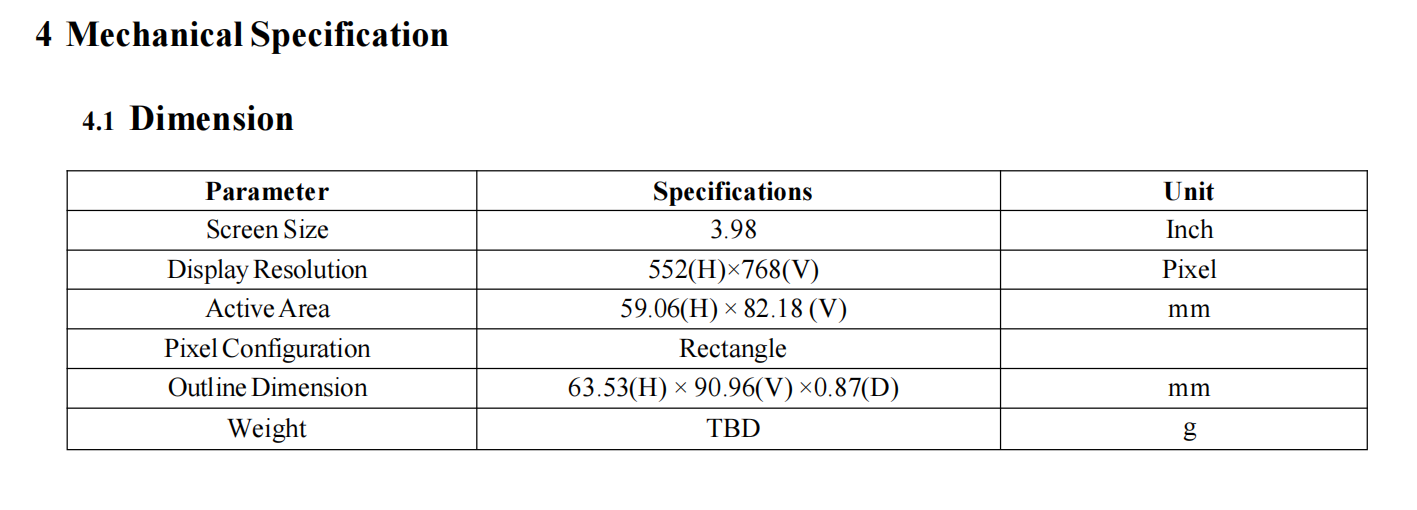 3.98 Inch 3.98'' 552x768 e Ink Screen Resolution E-ink Display E-ink screen
