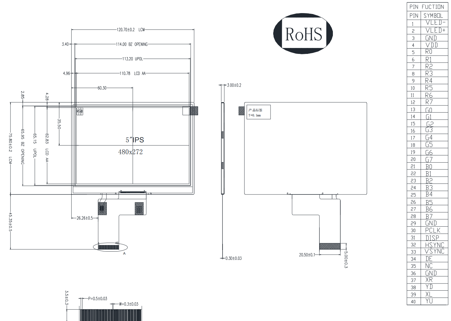 Size:5 inch Landscape LCD display