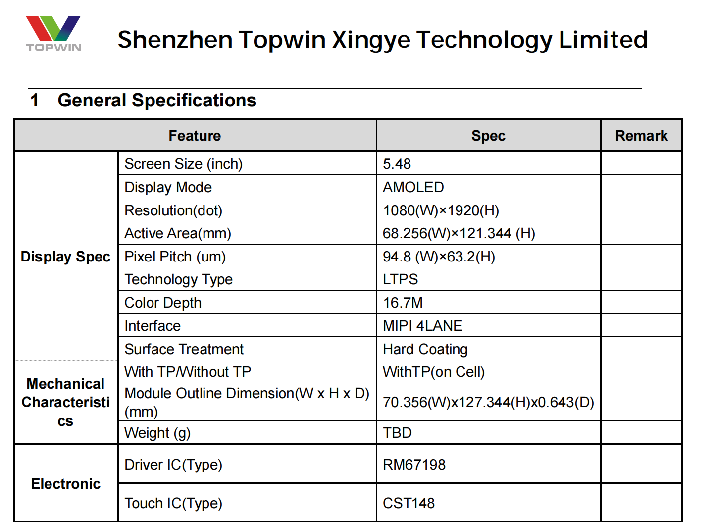 5.48inch 5.5'' amoled display ONCELL Touch Panel 916X2032 ILI7836A MIPI Interface Full Color Am Oled Display