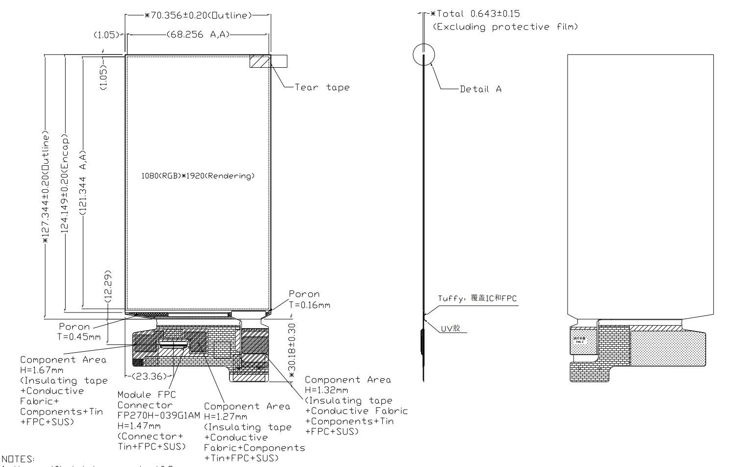 Module Outline Dimension:70.356(W)x127.344(H)x0.643(D)