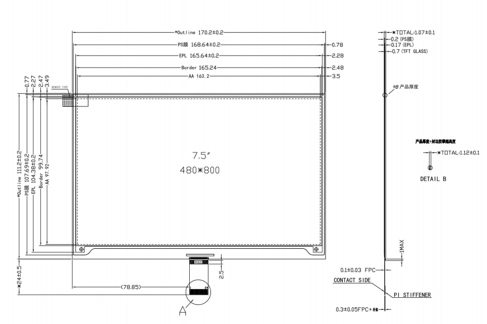 Outline Dimension170.2 (H) × 111.2(V) ×1.07(D)mm