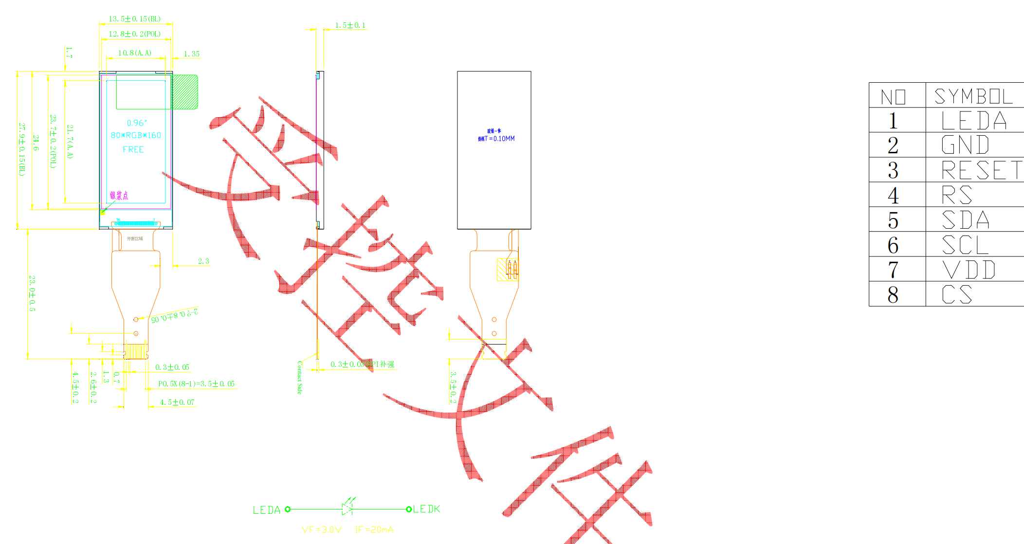 ٣ الدقة: ٨٠ (أفقي) RGB × ١٦٠ (رأسي)