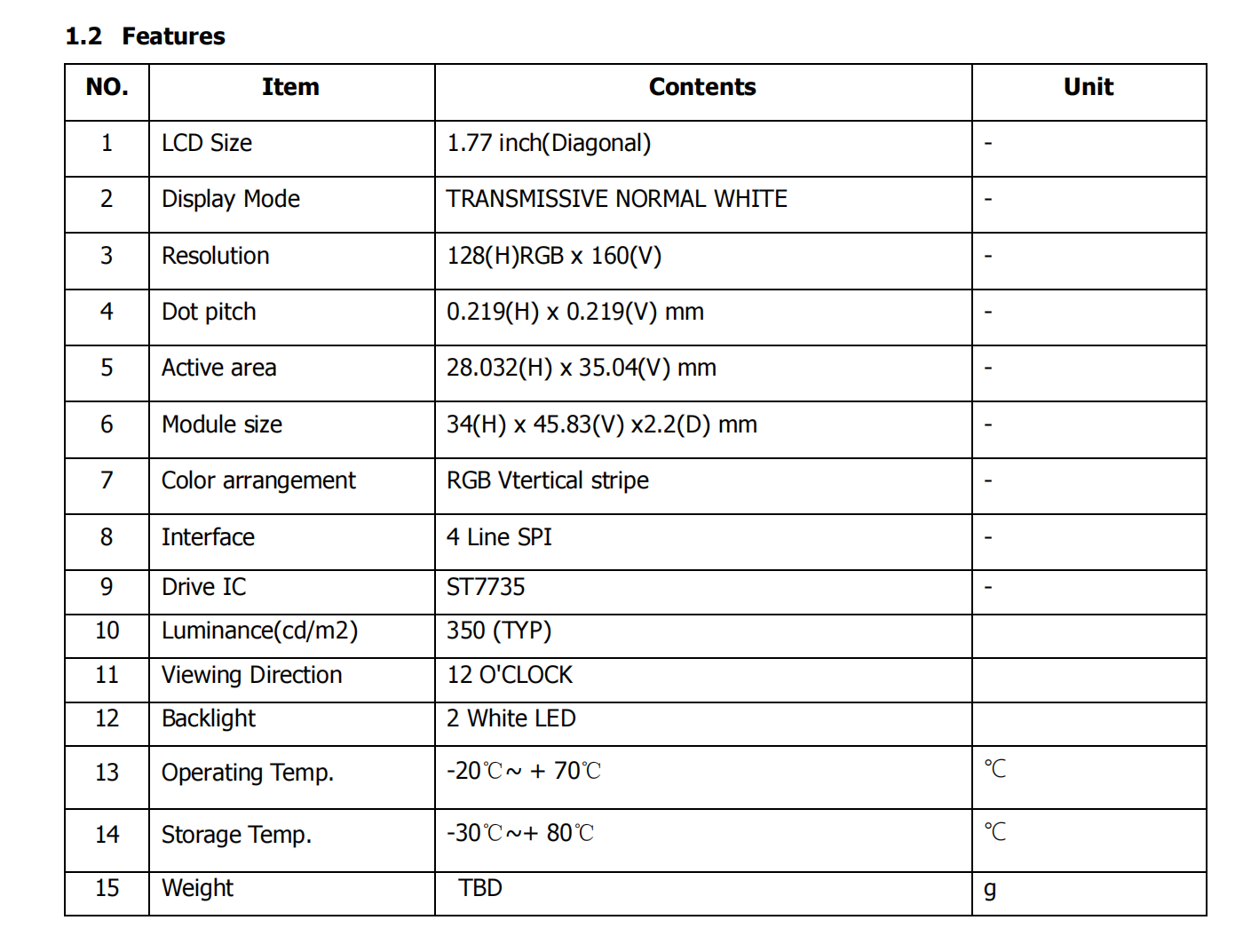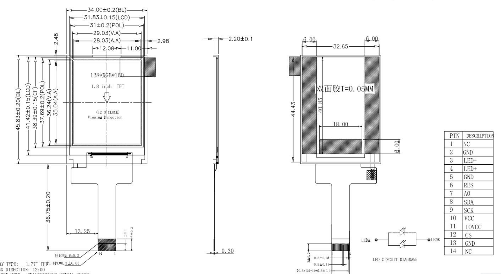 شاشة LCD TFT مقاس ١,٧٧ بوصة، بدقة ١٢٨ × ١٦٠، لوحة عرض بألوان كاملة، واجهة SPI، رقاقة التحكم المتكاملة ST7735