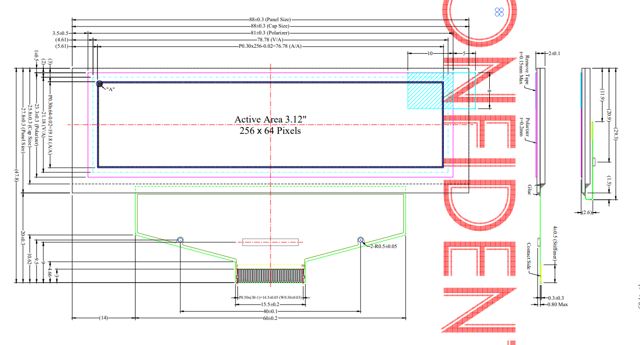 4) Panel Size: 88.00 × 27.80 × 2.00 (mm) including “Anti-Glare Polarizer”