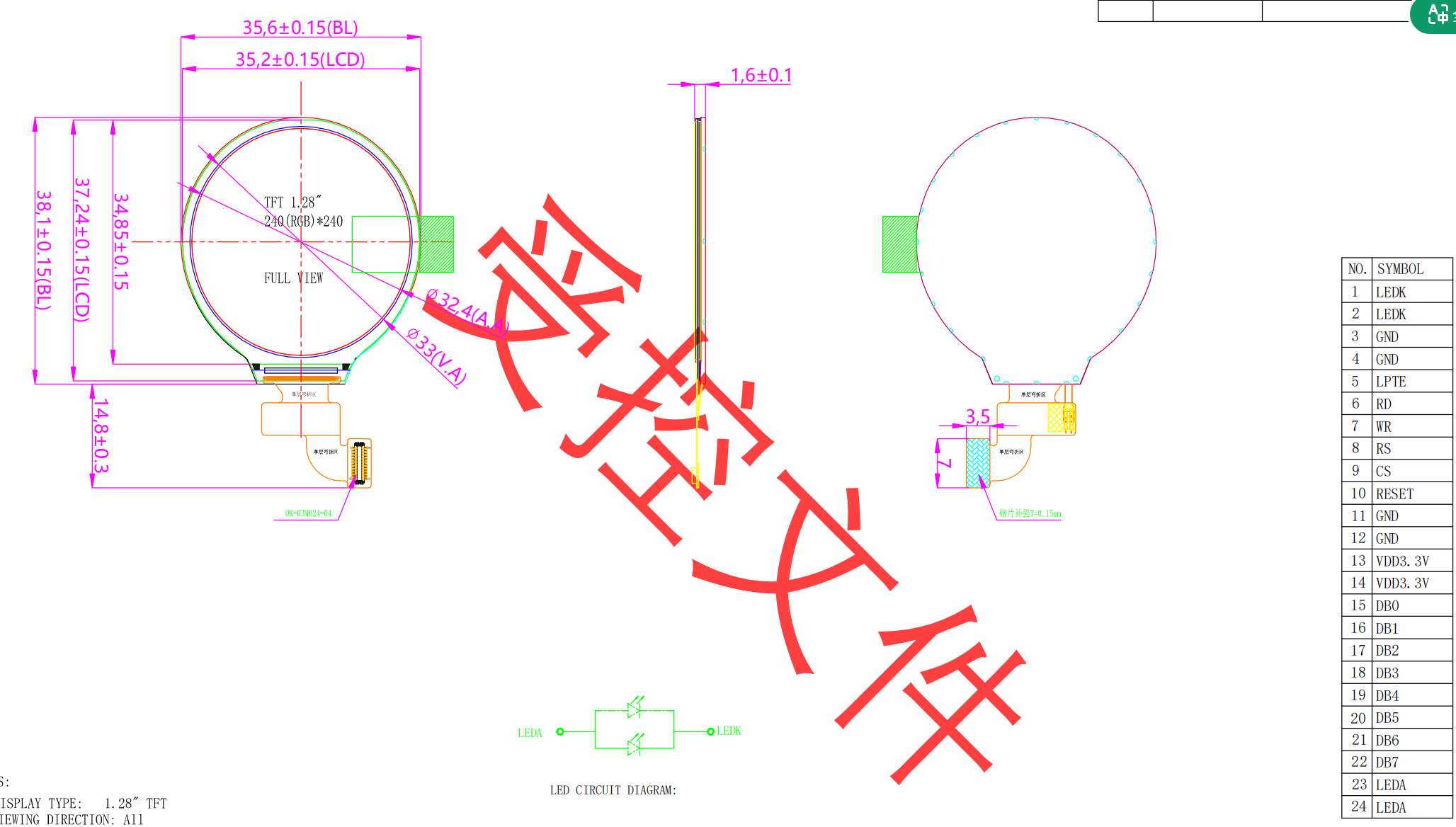 1 LCD-Größe: 1,28 Zoll (Durchmesser) –