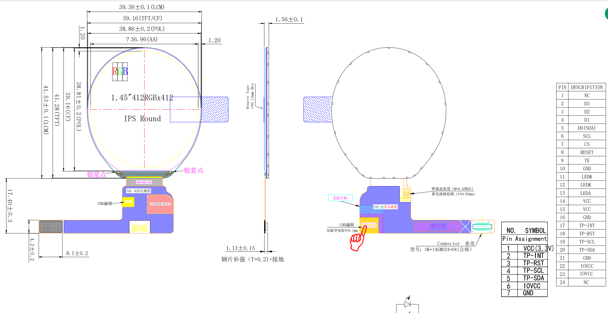 3 Auflösung: 412 (H)RGB × 412 (V) Pixel
