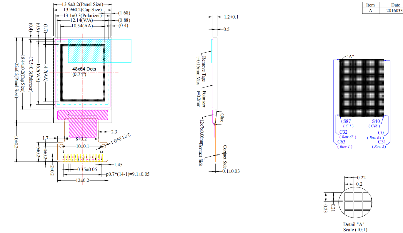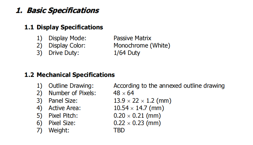 panel de pantalla OLED de 0,71'' (0,71 pulgadas), tipo de color blanco, 14 pines, resolución 48 × 64, montaje por soldadura, interfaz SPI/I²C