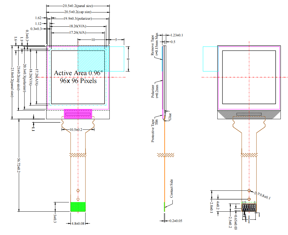 Panel de pantalla OLED cuadrada pequeña de 0,96 pulgadas (0,96''), resolución 96 × 96, modelo SSD1317, interfaz I²C, pantalla OLED miniatura, pantalla OLED para soldadura con 12 pines