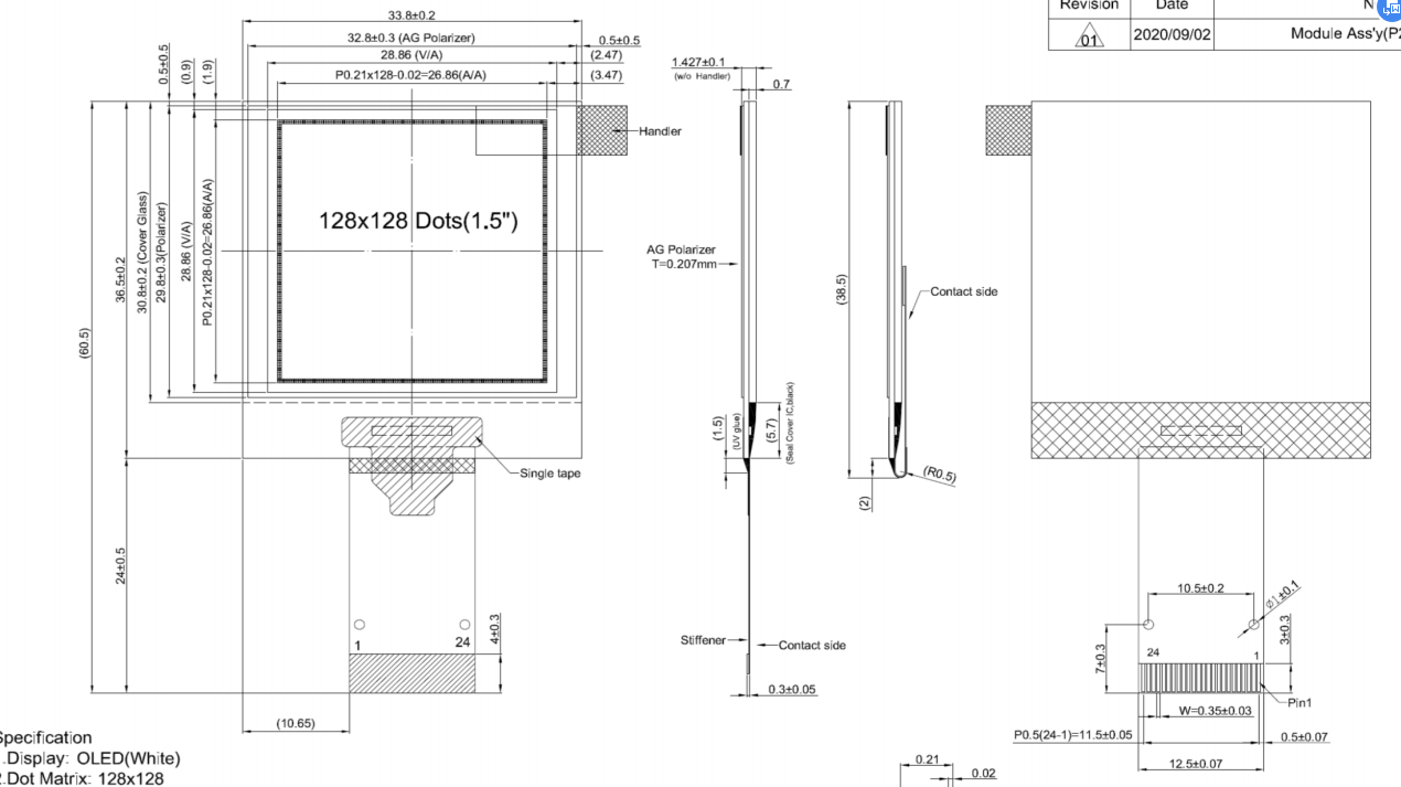 Grayscale 1.5'' 1.5inch oled display 128x128 display screen multi-Interface white colour SSD1327