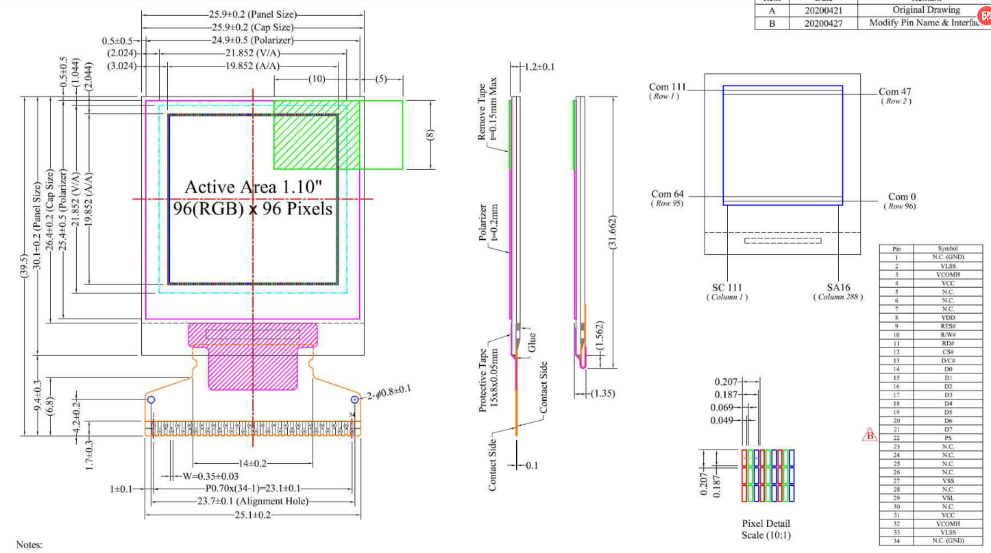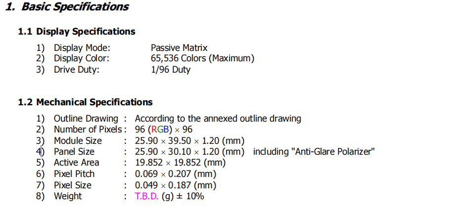 piccolo schermo OLED a saldatura da 1.12'' 1.12 pollici 96x96 pixel, 65k colori, UG-9696TDDJG02 parallelo, 4-fili SPI