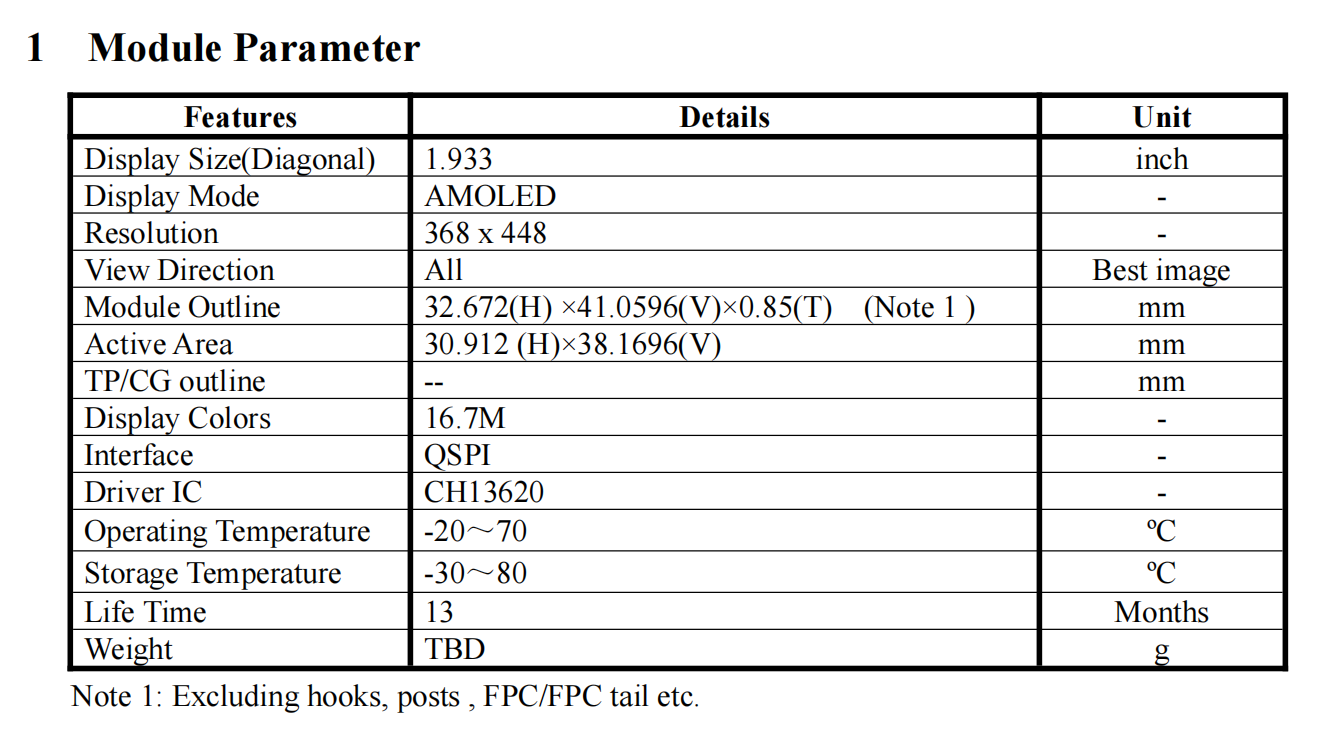 pannello display quadrato AMOLED da 1,93 pollici pannello touch ONCELL 368x488 CH13620 interfaccia MIPI SPI MCU display AMOLED a colori completi