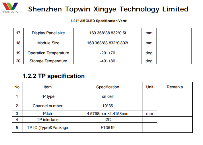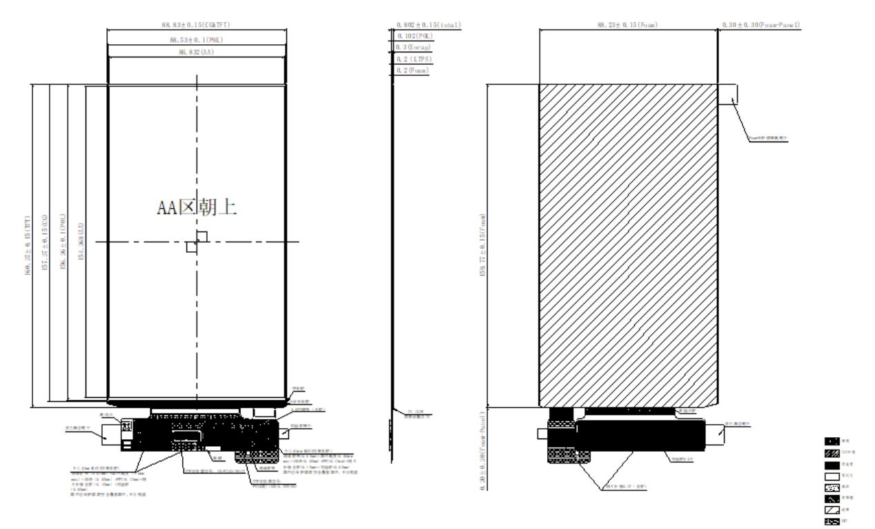 Dimensioni del pannello display:160,368*88,832*0,5t mm