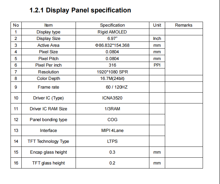 pannello touch screen OLED AM da 7 pollici ONCELL 1080x1920 con interfaccia MIPI DSI, pannello oled, driver schermo oled GD7658A BOE glass