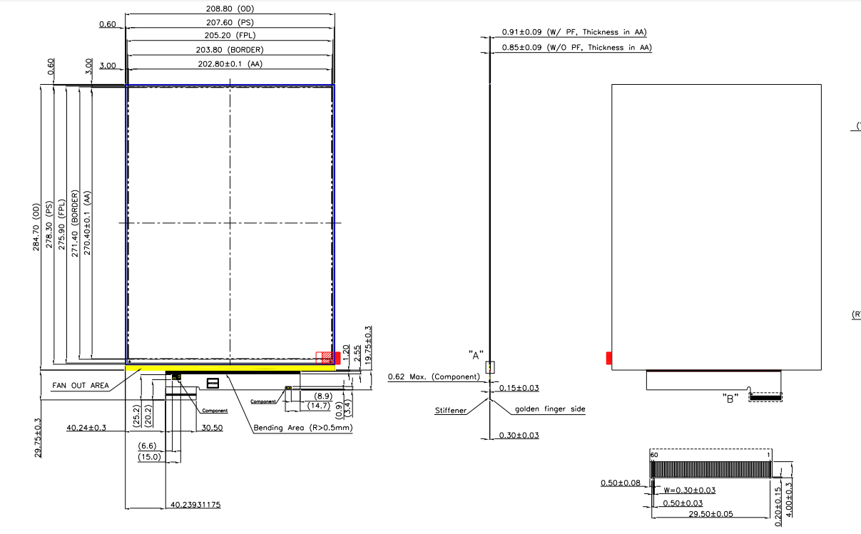 外形寸法: 208.8 (H) x 284.7 (V) x 0.85(D) mm