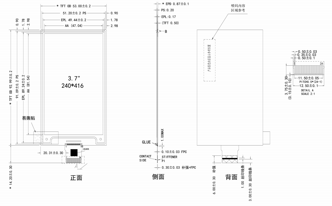 3.7인치 3.7'' 240x416 해상도 흑백적 전자잉크 디스플레이 모듈 에페이퍼 디스플레이 고효율 에너지 절약형 e-잉크 디스플레이