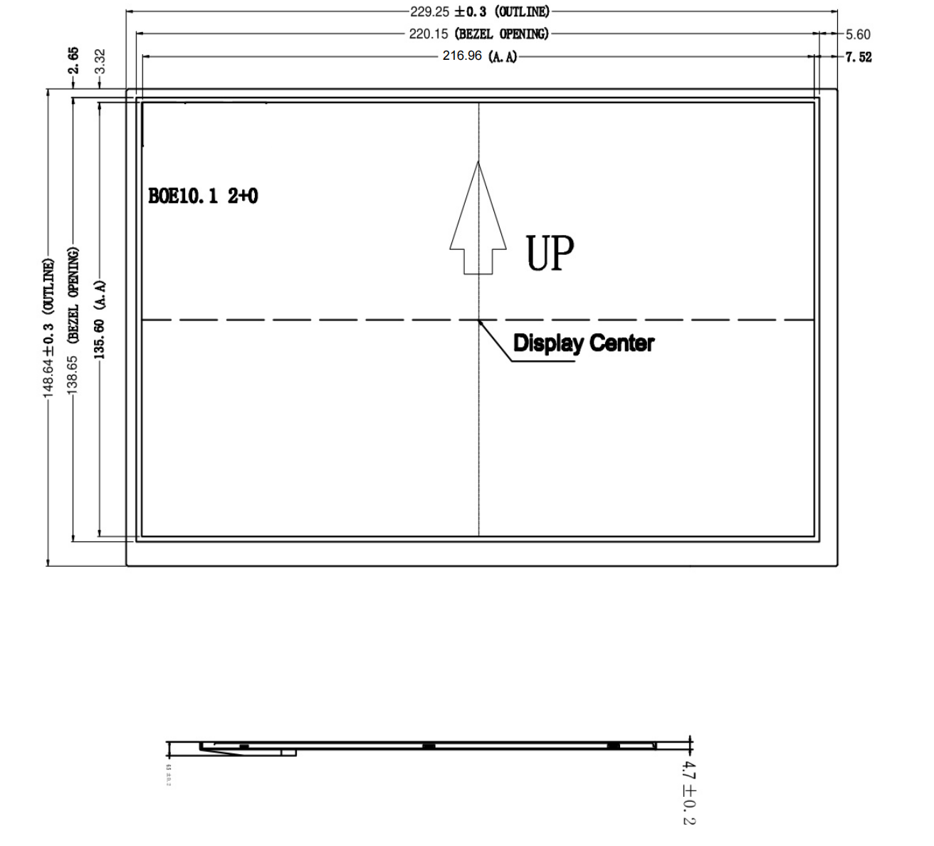 Outline dimension:229.25(H)*148.64(V)*4.7(D)mm