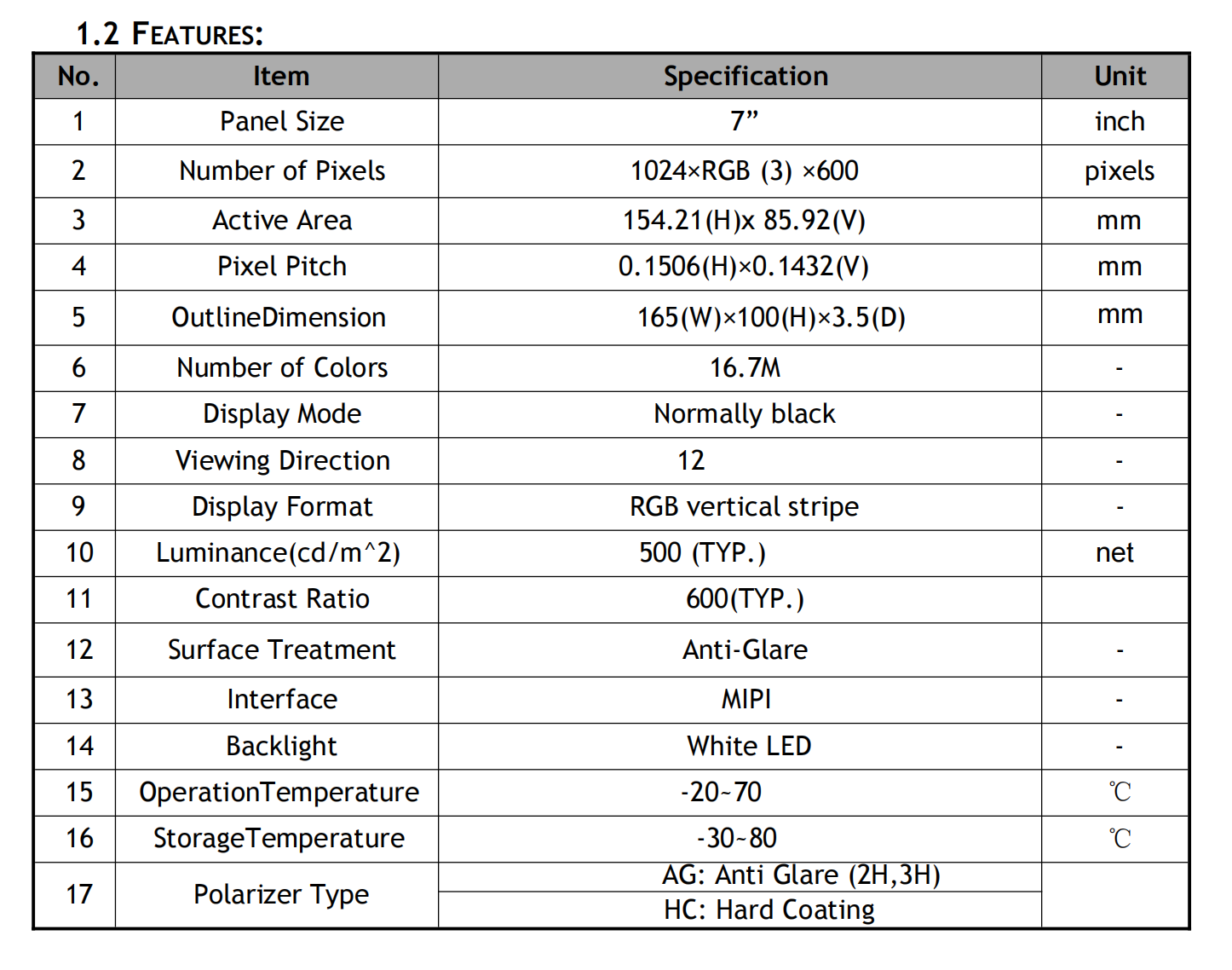 Luminance(cd/m^2):500 (TYP.)nits