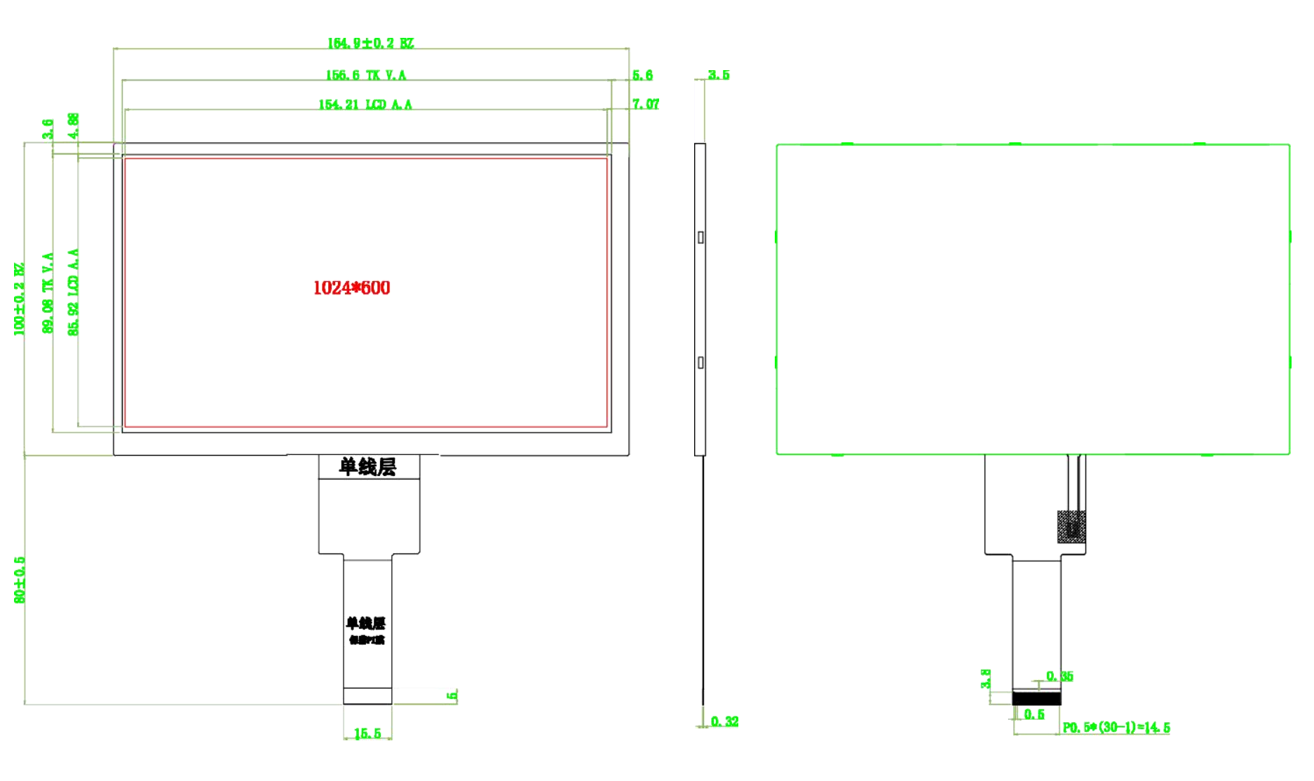 Active Area:154.21(H)x 85.92(V)mm