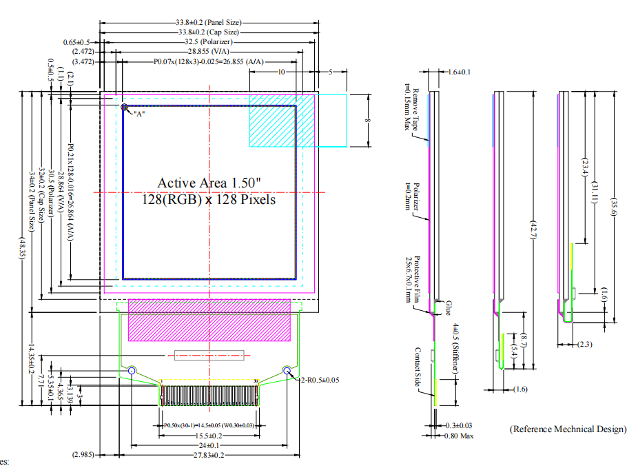 3) Tamanho do Painel: 33,80 × 34,00 × 1,60 (mm)