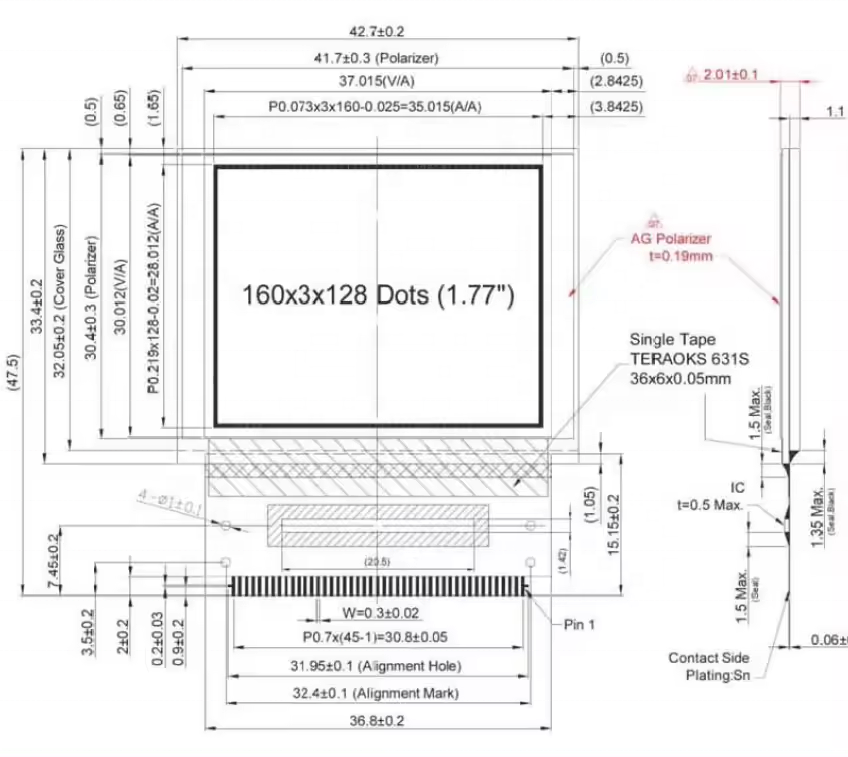 6 Tamanho do Painel: 42,8 (L) x 33,5 (A) mm