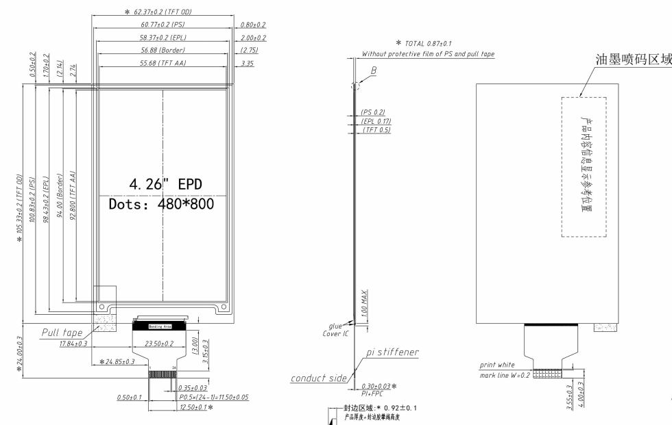 Portrait 10.3'' 10.3inch 1404x1872 Epaer Display Color Eink Display Panel e ink Screen