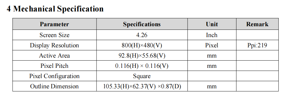4" 4inch square LCD tft display panel full color 720x720 resolution